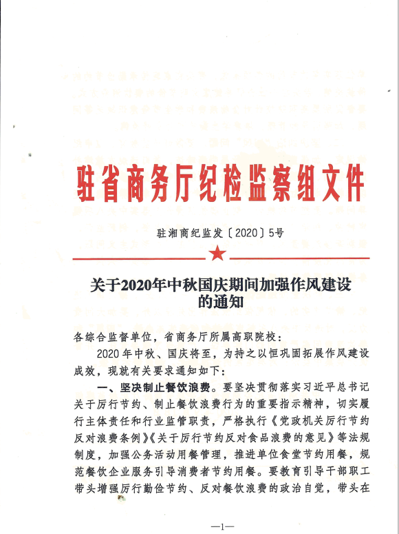 转发省纪委省监委驻厅纪检监察组《关于确保2020年中秋国庆期间加强作风建设的通知》的通知