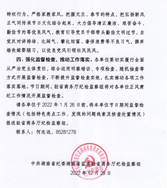 关于做好2023元旦春节期间正风肃纪工作的工作提示
