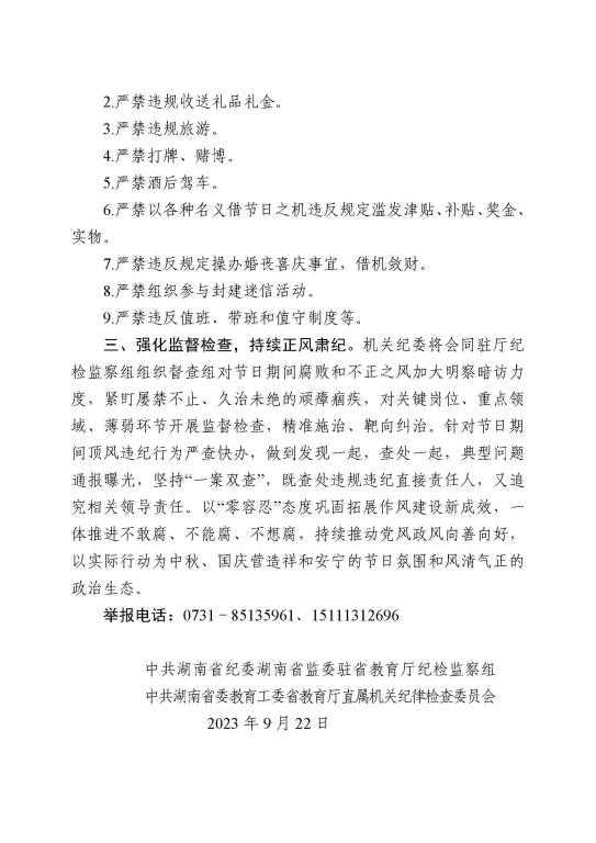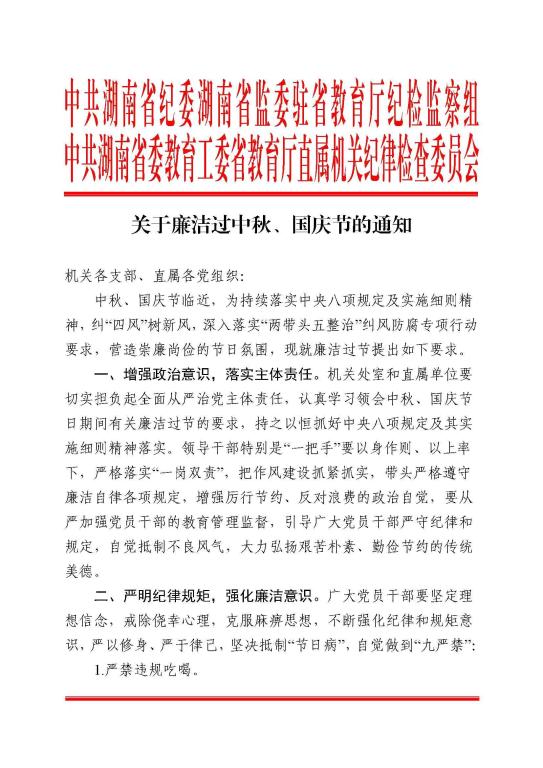 转发省纪委省监委驻教育务厅纪检监察组关于廉洁过好中秋、国庆的通知